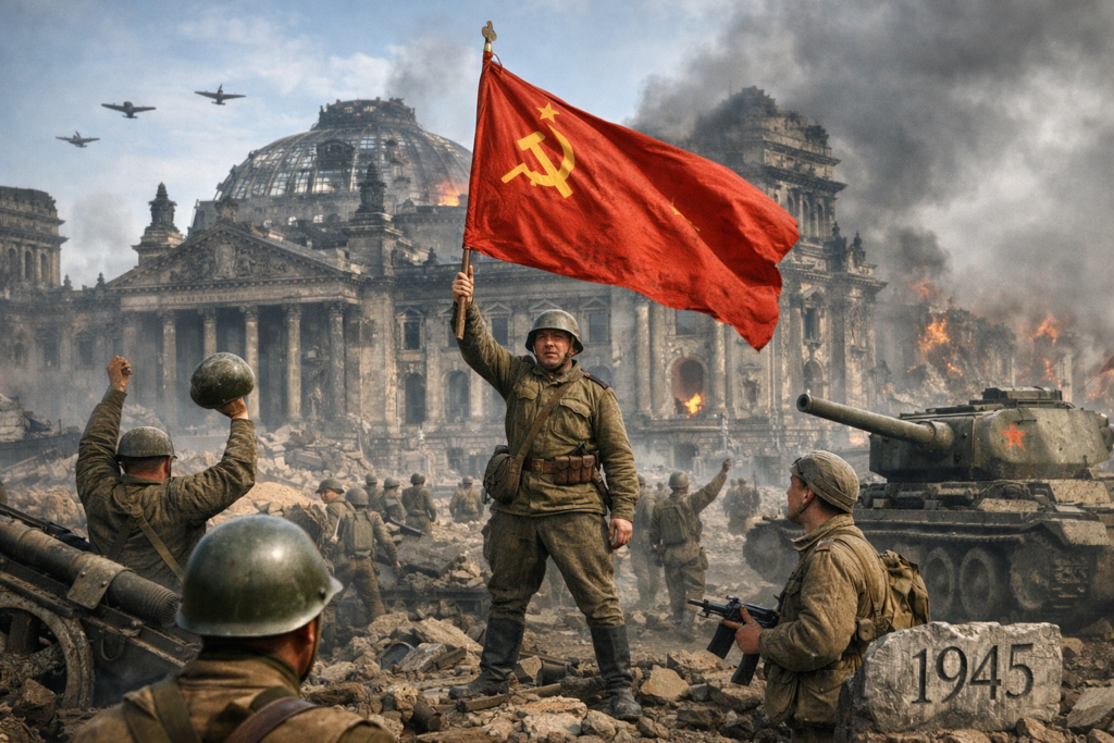 - Падение Берлина: Штурм столицы Третьего рейха стал символом полного краха нацистского режима.