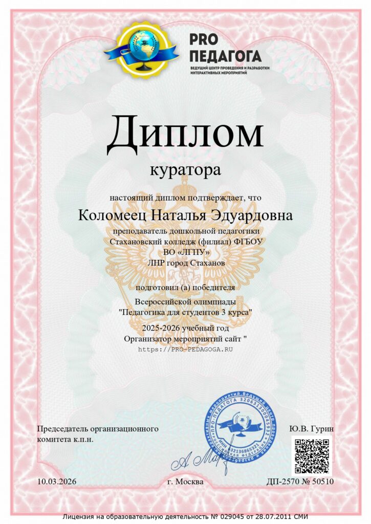 Будущее дошкольного образования: наша студентка стала лучшей в олимпиаде «Педагогика для студентов 3 курса»