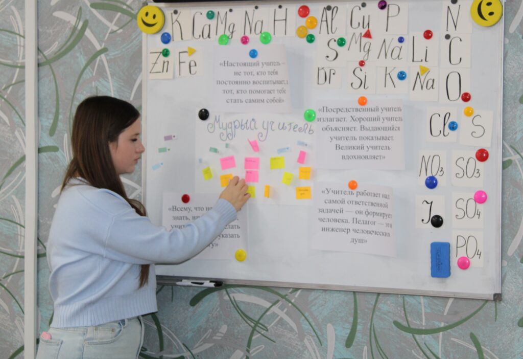 Мероприятие прошло в формате практикума: студенты создавали ассоциативные коллажи на тему «Мудрый учитель», составляли схематические портреты педагогов, выделяя черты характера, типичные фразы и поступки мудрого и немудрого учителя. Особенно оживлённо прошёл разбор кейсов с реальными педагогическими ситуациями, где будущие учителя искали мудрые решения сложных вопросов.