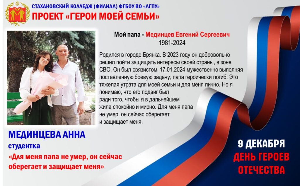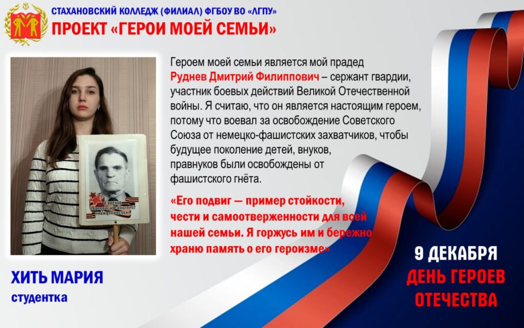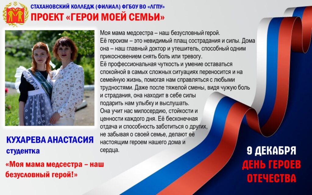 В Стахановском колледже #ЛГПУ прошёл онлайн-челлендж под названием «Герои моей семьи» ко Дню Героев Отечества, который ежегодно отмечается 9 декабря.
