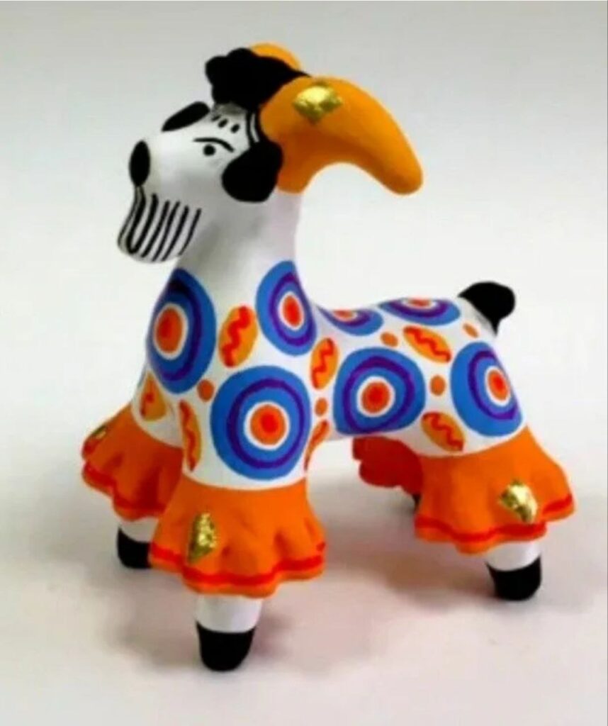 Дымковская игрушка родом из села Дымково под Кировом (бывший Вятка). Её история уходит корнями в глубокую древность – некоторые исследователи связывают её с языческими весенними обрядами, в частности с праздником Свистунья, который отмечался в конце апреля. В те времена глиняные свистульки и фигурки не просто радовали глаз – они считались оберегами, приносящими удачу, плодородие и благополучие.