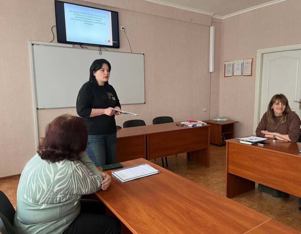 В колледже состоялось заседание кураторов, которое провела Яна Шевцова, заместитель директора по воспитательной работе. В центре внимания – актуальная тема: «Методы бесконфликтного общения со студентами».