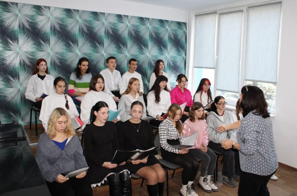 В рамках учебной дисциплины «Хоровой класс и управление хором» в Стахановском колледже #ЛГПУ студенты первого и второго курса специальности «Музыкальное образование», под руководством преподавателя Елены Замерец и концертмейстера Елены Трофимовой, имеют возможность не только исполнять разные по стилю произведения, но и интерпретировать их, изучать психологию музыки, основы сценического движения и элементы актёрского мастерства.
