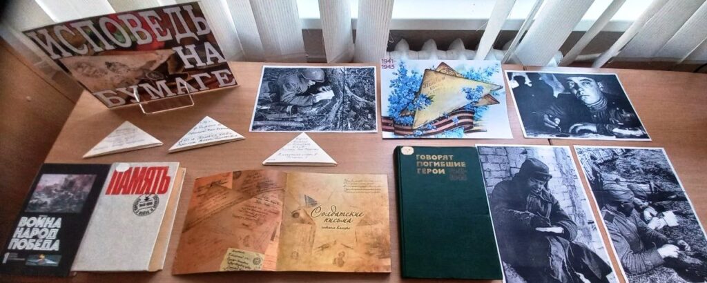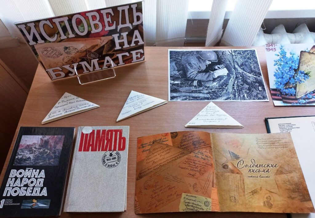 На выставке представлены книги, содержащие реальные письма участников Великой Отечественной войны своим родным и близким, фронтовые заметки, воспоминания.