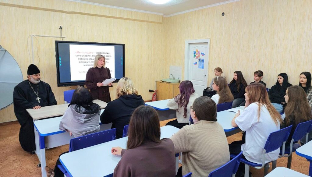 В работе круглого стола приняли участие клирик Свято-Михайловского храма г. Стаханова иерей Антоний Сергиенко, студенты 1 курса, обучающиеся по специальности «Преподавание в начальных классах» и «Дошкольное образование».