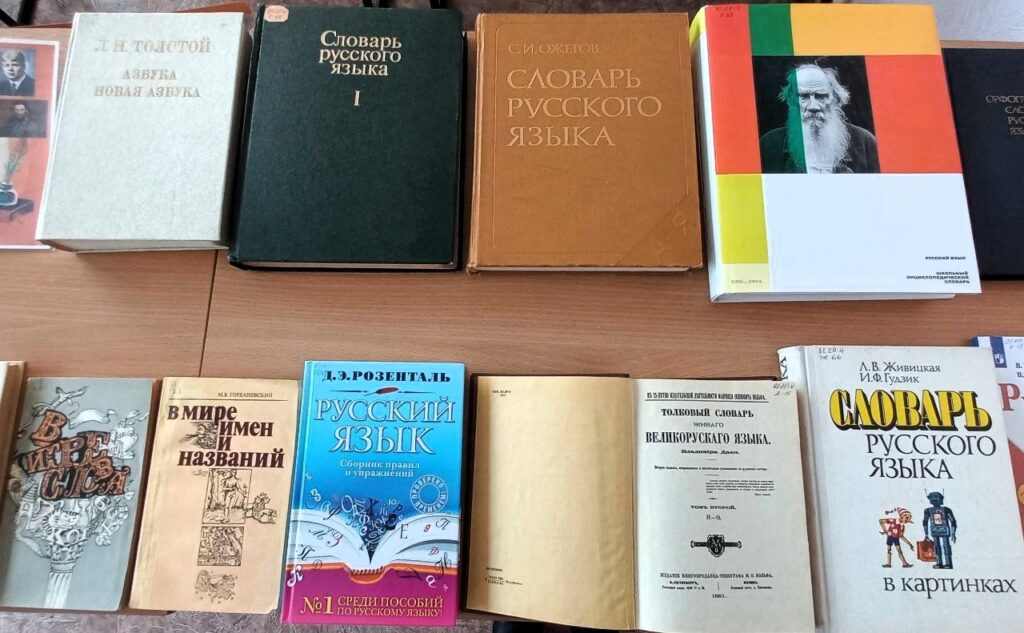 Посетители могут познакомиться с подборкой изданий, посвящённых русскому языку: его истории, особенностям и богатому наследию. На выставке представлены научные и научно‑популярные работы по лингвистике; учебно‑методические пособия для изучающих язык; справочные издания – словари, грамматические справочники и энциклопедии; сборники крылатых фраз и афоризмов.