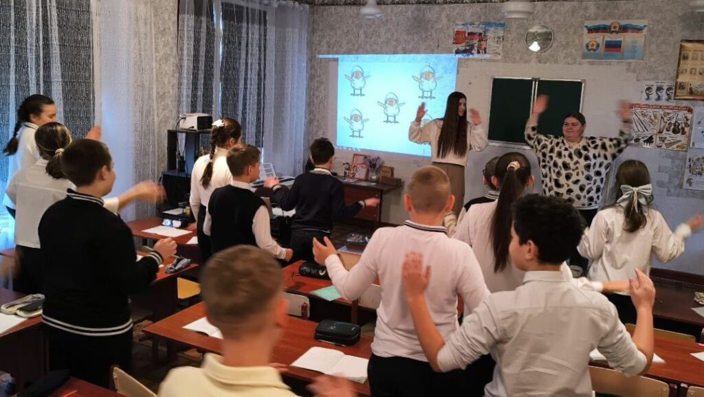 Студенты третьего курса Стахановского колледжа #ЛГПУ специальности «Музыкальное образование» под руководством Татьяны Андреевой проводят фрагменты урока музыки в рамках учебной практики «Преподавание музыки и организация внеурочных музыкальных мероприятий в общеобразовательных организациях» в Стахановской средней школе №18 им. Валерия Болотова.