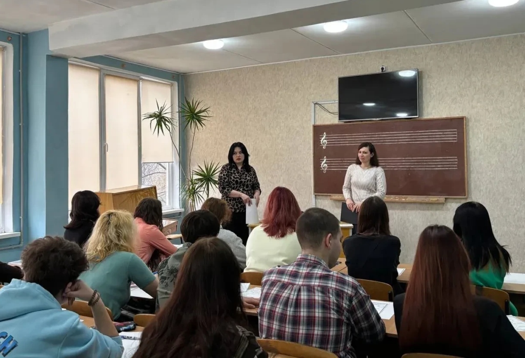 Заместитель директора по воспитательной работе Яна Шевцова и преподаватель Кристина Заблодская провели для студентов специальности «Преподавание в начальных классах» открытое занятие на тему «Взаимодействие классного руководителя с семьями учеников и лицами, их замещающими».