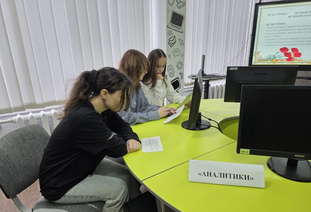 Занятие началось с минуты молчания в память о всех, кто отдал свою жизнь в борьбе с фашизмом. Преподаватель подчеркнула, что первый период войны — это время суровых испытаний и невероятного мужества советского народа.