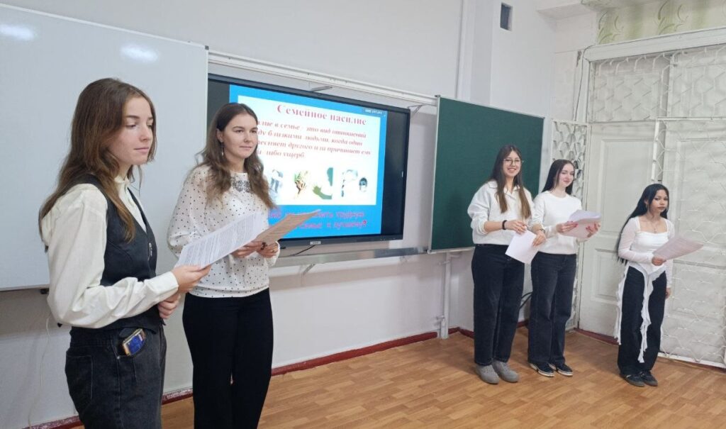 В ходе беседы школьники узнали о формах насилия, признаках домашнего насилия, а также о том, куда можно обратиться за помощью и поддержкой. Студенты постарались создать доверительную атмосферу, чтобы подростки могли задавать вопросы и обсуждать сложные, но важные темы открыто и безопасно.