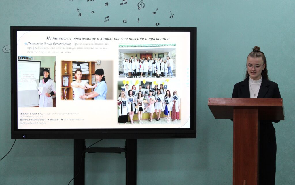 Студенты представили доклады, в которых осветили важные аспекты и достижения системы СПО. Рассказали о выдающихся личностях, закончивших среднее профессиональное образование и достигших значительных успехов в различных областях. Особое внимание было уделено обсуждению роли преподавателей и наставников в формировании профессиональных компетенций студентов.