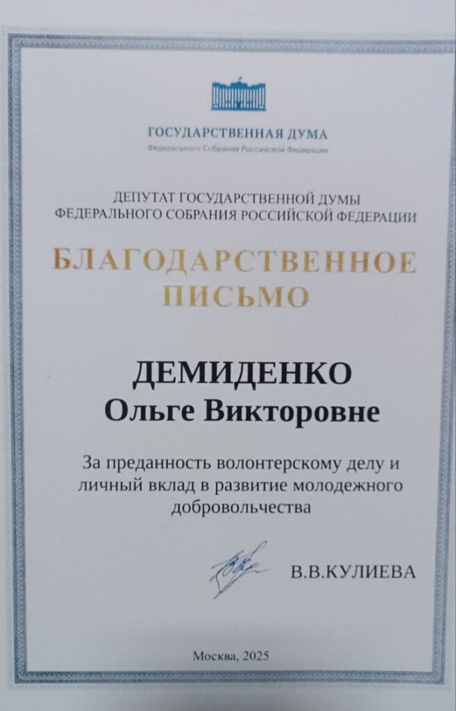 Особое внимание было уделено волонтёрскому отряду «Добротворец» Стахановского колледжа #ЛГПУ: его руководитель Ольга Демиденко и наиболее активные участники были отмечены благодарственными грамотами за инициативность, сплочённость и неизменную готовность помогать тем, кто в этом нуждается.