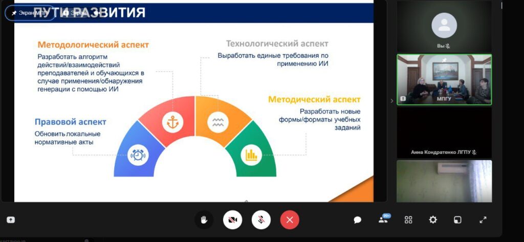 егодня преподаватели Ольга Беспалова, Дмитрий Безбожный, Данил Еременко, Виктория Косинова и Кристина Заблодская приняли участие в образовательном семинаре из цикла «Искусственный интеллект в современном высшем педагогическом образовании: возможности, риски и перспективы развития».