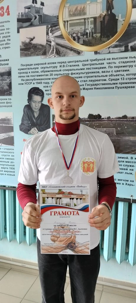 На базе Стахановского стадиона «Победа» состоялся турнир памяти Владимира Дьяченко по армрестлингу «Битва рукоборцев», в котором приняли участие студенты средних профессиональных образовательных учреждений города Стаханова.