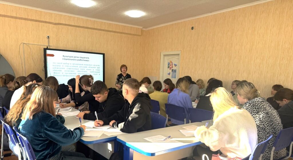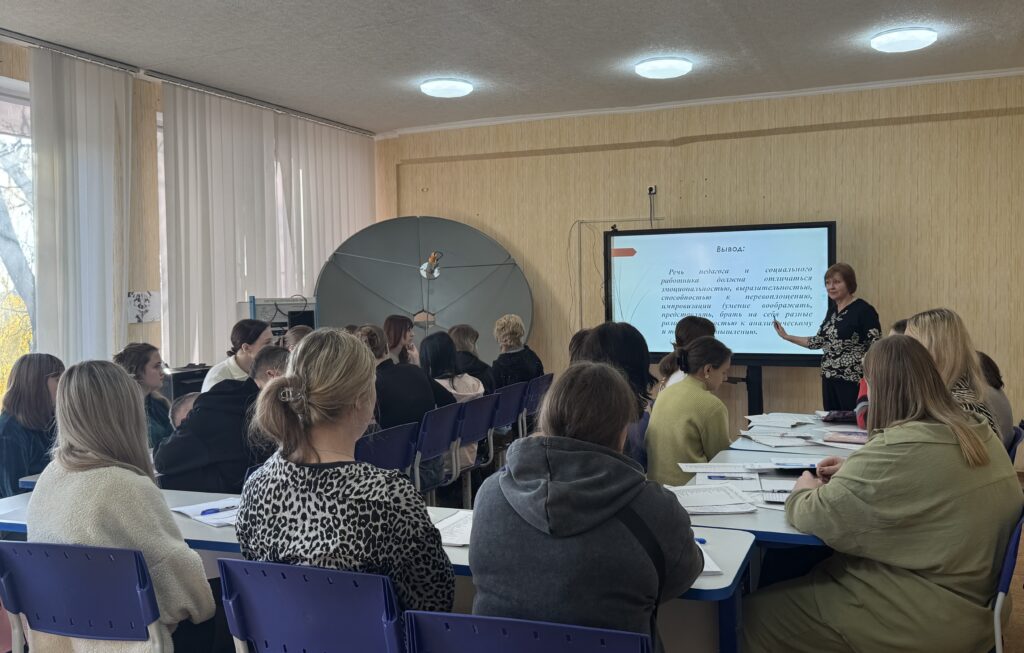 В колледже прошло открытое интегрированное практическое занятие по предметам «Основы педагогического мастерства» и «Психология Общения» для студентов разных специальностей. Тематика практического занятия «Культура речи педагога и социального работника» нашла своё отражение в профессионально ориентированном содержании учебного материала, который максимально приближен к правилам и принципам будущей профессии.