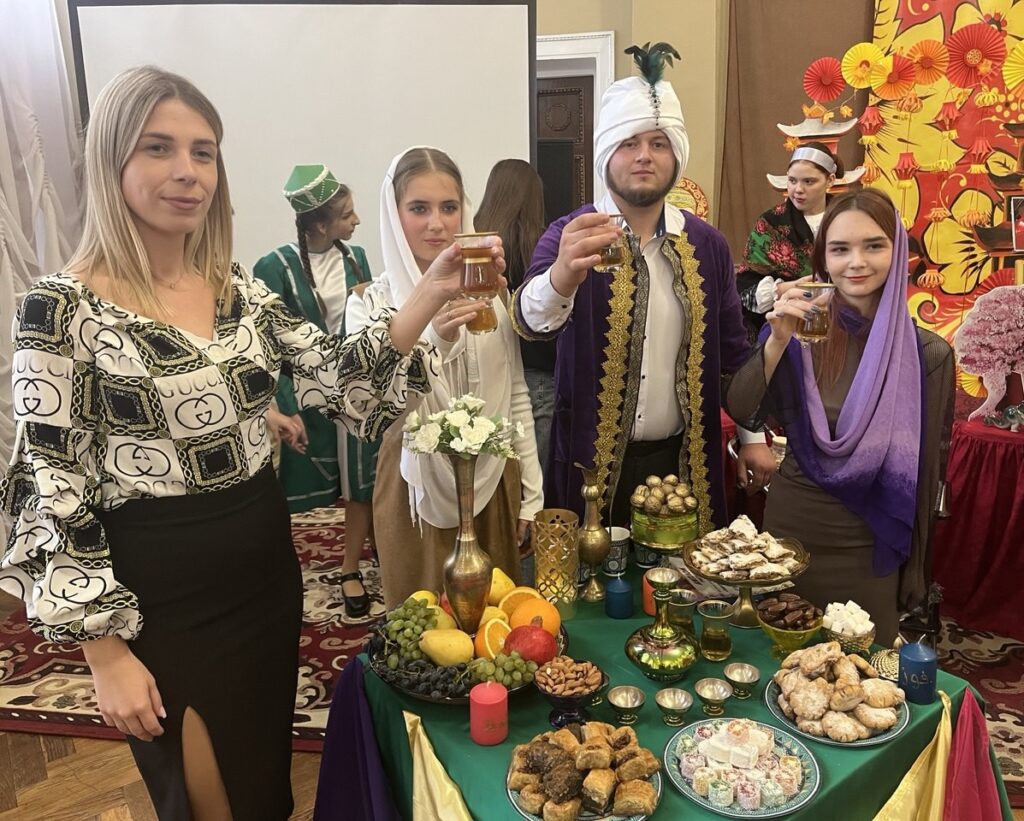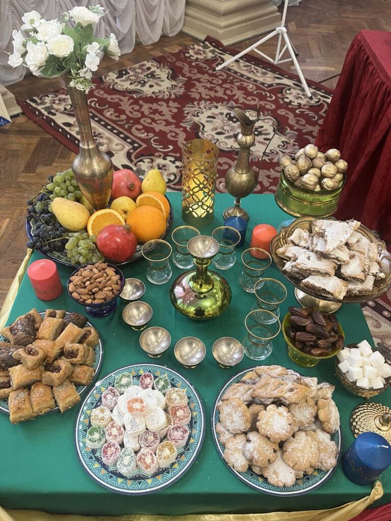 Особое внимание привлёк тщательно продуманный антураж: стол был оформлен в традиционном арабском стиле — с изысканной посудой, богатыми тканями, национальными орнаментами и декоративными элементами, создающими атмосферу настоящей восточной сказки. Представители колледжа также были в тематических костюмах. Гости фестиваля не только насладились яркими вкусами, но и окунулись в неповторимую атмосферу уюта, щедрости и уважения к гостю — ключевых ценностей арабской культуры.