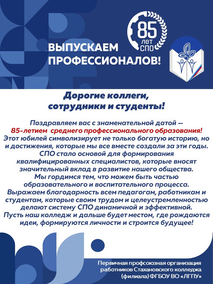 Дорогие коллеги, сотрудники и студенты! Поздравляем вас с знаменательной датой – 85-летием среднего профессионального образования! Дорогие коллеги, сотрудники и студенты! Поздравляем вас с знаменательной датой – 85-летием среднего профессионального образования! Читать дальше